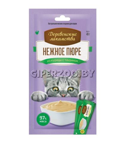 Деревенские лакомства Нежное пюре (курица), 10 гр*4 шт - это мясной десерт для кошек.
