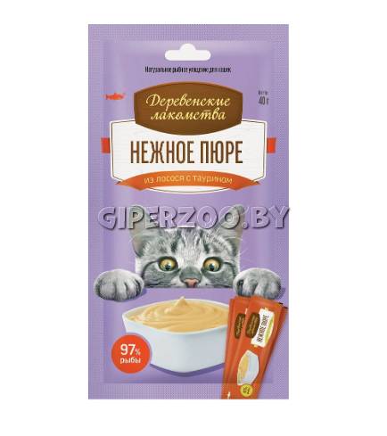 Деревенские лакомства Нежное пюре (лосось), 10 гр*4 шт - это рыбное лакомство для кошек.