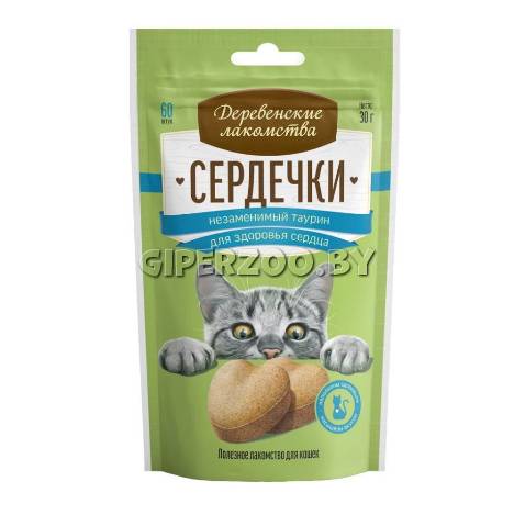 Деревенские лакомства Сердечки с таурином (курица), 30 гр - уникальный рецепт этого лакомства поддерживает здоровье сердечно-сосудистой системы и сетчатки глаз благодаря содержанию таурина. А ещё оно очень вкусное.