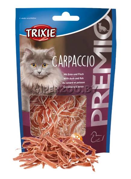 Trixie Premio Карпаччо из утки и белой рыбы — безглютеновое лакомство для кошек.