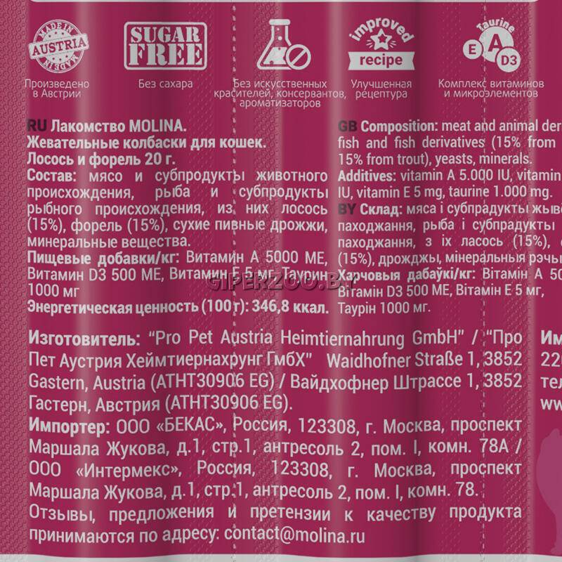 Безупречно вкусное и полезное лакомство для кошки. Добавлен мультивитаминный комплекс и таурин для здоровья кошки. Без сахара, злаков, сои, искусственных красителей, консервантов, ароматизаторов и ГМО.