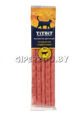 Колбаски для собак TiTBiT (ТитБит) Салямка изготовлены из говяжьего мяса и мясных субпродуктов по колбасной технологии с добавлением следующих компонентов: кукуруза, морковь и говяжья печень. Это натуральный продукт, который не содержит красителей и консервантов.