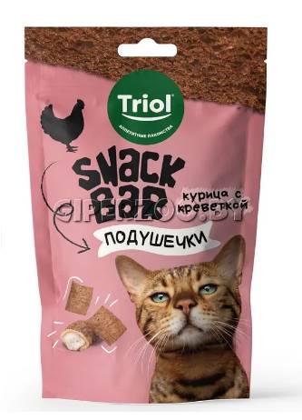 Triol Snack Bar Мини-подушечки с начинкой из курицы с креветкой — это не просто вкуснейшее лакомство, но и полезное дополнение к ежедневному рациону вашей кошки. Каждая подушечка наполнена нежнейшим кремом.