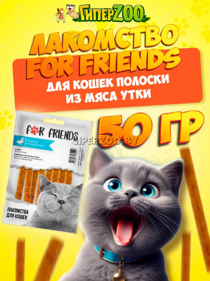 Лакомство для кошек For Friends Полоски из мяса утки, 50 гр