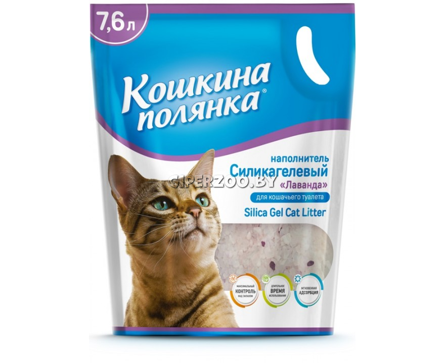 Впитывающий силикагелевый наполнитель Кошкина Полянк Silicamix Сила Кислорода лаванда, 6 л- наполнитель с силикагелем и активным кислородом.