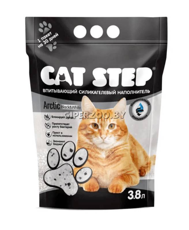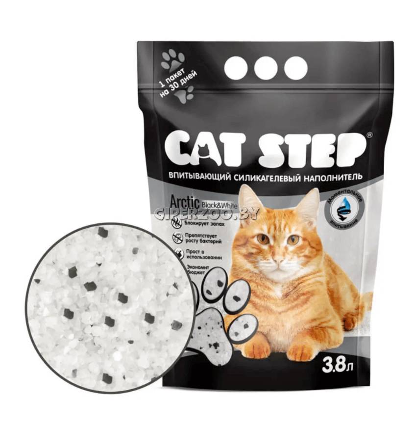 Cat Step Arctic Black&White — силикагелевый наполнитель для кошачьего туалета.