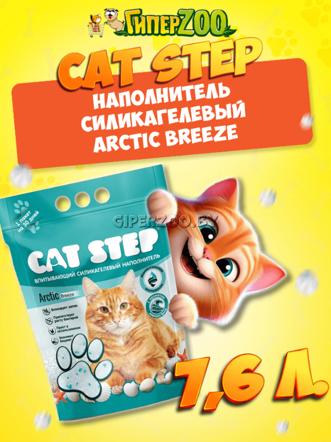 Cat Step Arctic Breeze — силикагелевый наполнитель для кошачьего туалета. Cat Step Arctic Breeze моментально впитывает влагу и уничтожает запахи. Пористая структура кристаллов обеспечивает их высокую способность к поглощению жидкостей и запахов. Наполнитель препятствует размножению и развитию бактерий и грибков за счет своего неорганического происхождения. Наполнитель не требует постоянного контроля и ежедневной уборки кошачьего лотка.