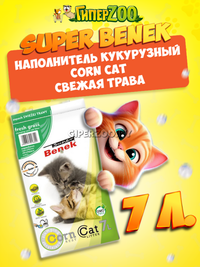 Наполнитель Super Benek Corn Cat кукурузный (свежая трава), 7л