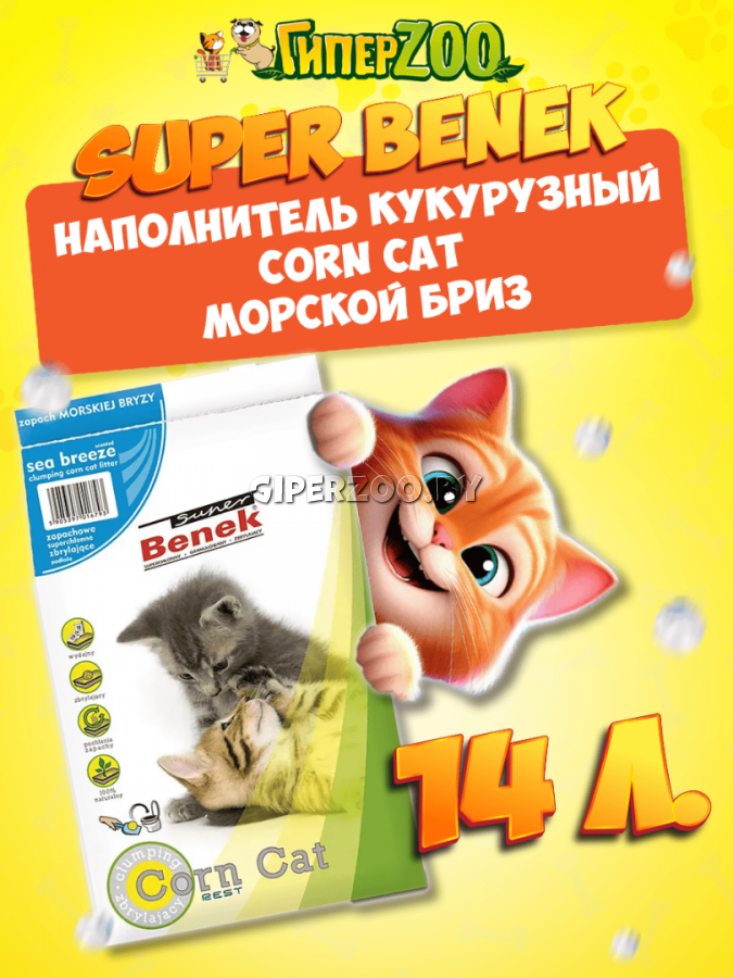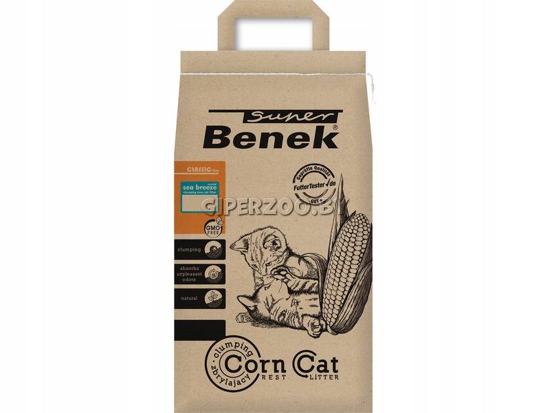 Super Benek Corn Cat Natural (Супер Бенек Корн Кэт) Наполнитель кукурузный комкующийся. Подстилка из 100% натурального возобновляемого сырья. Биоразлагаемый. Обладает натуральным тонким ароматом кукурузы. Он отличается мелкозернистостью и высокой удельной плотностью, что обеспечивает высокую производительность продукта. Соответствующий вес зерен ограничивает распространение гравия за пределы подстилки. Комки подстилки прочно скрепляются и не крошатся, когда вы вынимаете их из туалетного лотка лопаткой. Инновационная технология объединения неприятных запахов в комок гарантирует свежесть и эффективное устранение характерного запаха кошачьей мочи.