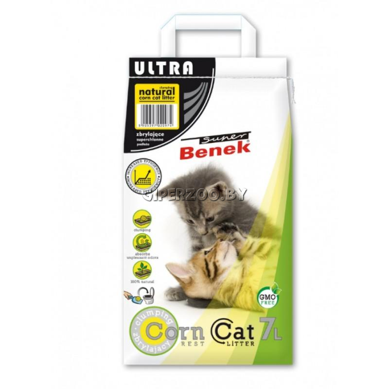 Наполнитель Super Benek Corn Cat Ультра Натуральный, 7л - это очень экономичный кукурузный наполнитель.
