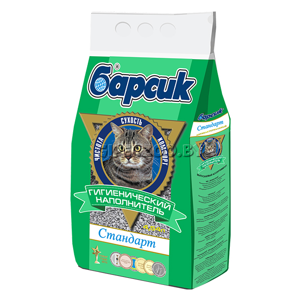 Барсик Наполнитель Стандарт 4,54 л - экологически чистый высококачественный впитывающий наполнитель для кошачьего туалета.