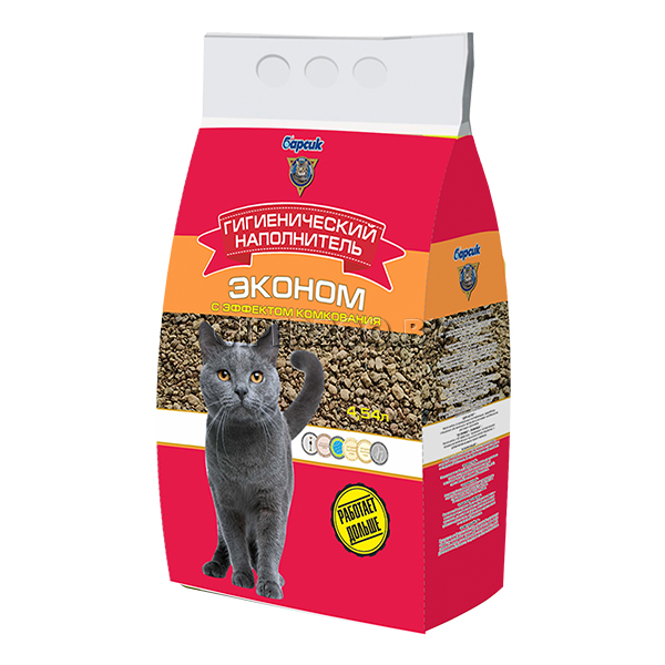 Основные свойства наполнителя Барсик «Эконом»: с эффектом комкования - образует плотный комок , изготовлен из 100% натуральных минеральных компонентов, Обладает бактерицидными свойствами, отлично впитывает влагу, защищает от запаха, гранулы не прилипают к шерсти и лапам, не токсичен, не вызывает аллергии, экологически чистый продукт.