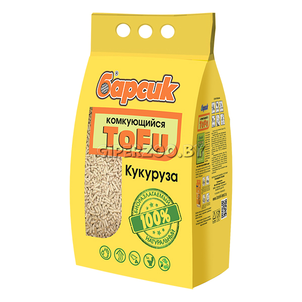 Барсик Наполнитель TOFU Кукурузный 4,54 л - высококачественный натуральный комкующийся наполнитель для кошачьего туалета на основе растительных волокон, с легким естественным ароматом молочной кукурузы.