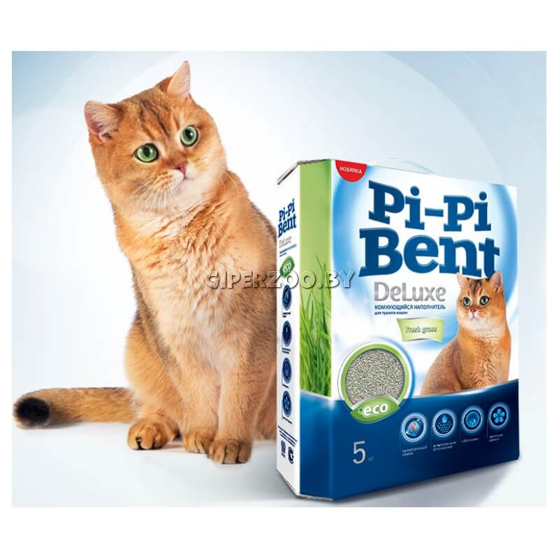 Наполнитель "Pi-Pi Bent Deluxe Fresh Grass" 5 кг - это комкующийся бентонитовый наполнитель супер-премиум класса для кошачьих туалетов.