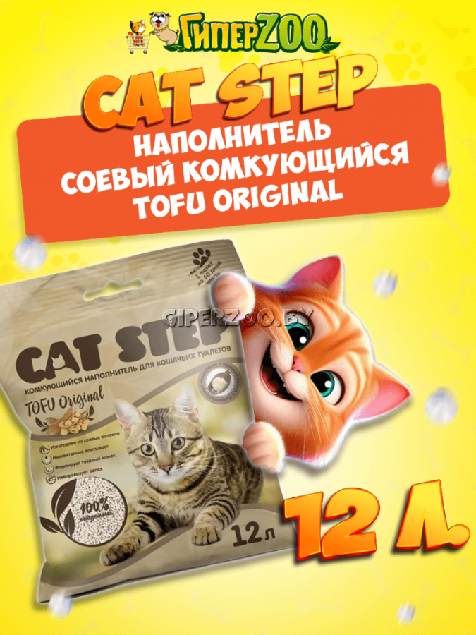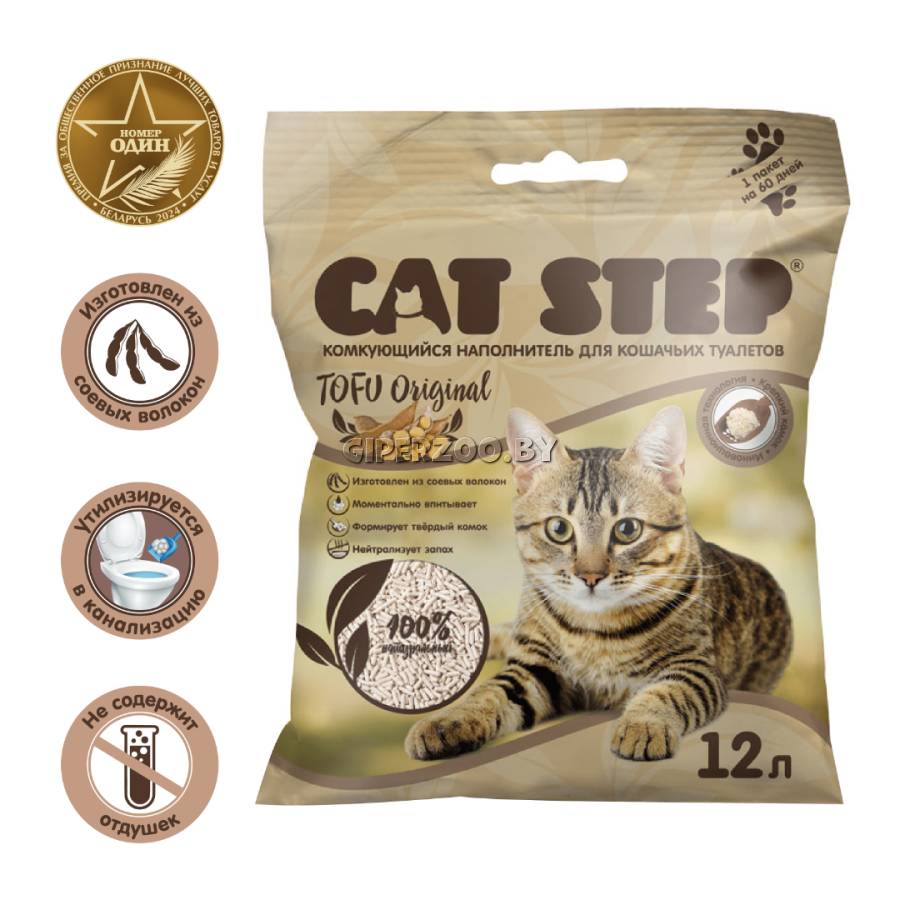 Cat Step Tofu Original, 12 л - это комкующийся растительный наполнитель для кошачьих туалетов.