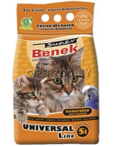 Super Benek - УНИВЕРСАЛЬНЫЙ СТАНДАРТ 5 л - гигиенический наполнитель для домашних животных изготавливается из бентонитовых глин в виде регулярных гранул величиной 2-5 мм.