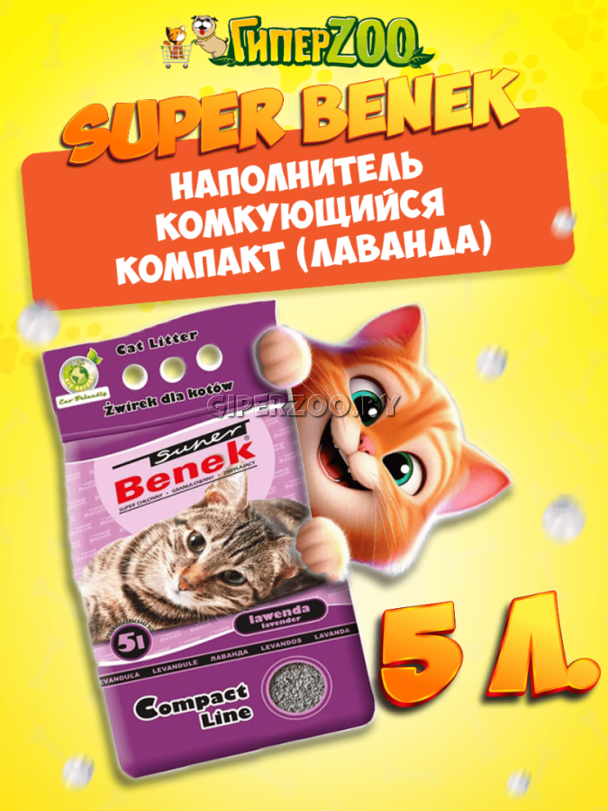 Наполнитель комкующийся для кошачьего туалета Супер Бенек Компакт Лаванда 5 л - наполнитель комкующийся для кошачьего туалета с ароматом лаванды