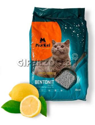 Murkel Наполнитель бентонитовый (Лимон), 20 л (16 кг) – комкующийся наполнитель для туалета кошек в виде формованных шариков 0,8-3,5 мм, изготовленных из бентонита природного вулканического глинистого минерала, обладающего свойством поглощения запахов и разбухания при контакте с жидкостью до объёма в 14-16 раз превышающий его первоначальный.