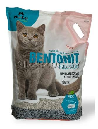 Murkel Наполнитель бентонитовый (Нейтральный), 10 л (8 кг) – комкующийся наполнитель для туалета кошек в виде формованных шариков 0,8-3,5 мм, изготовленных из бентонита природного вулканического глинистого минерала, обладающего свойством поглощения запахов и разбухания при контакте с жидкостью до объёма в 14-16 раз превышающий его первоначальный.