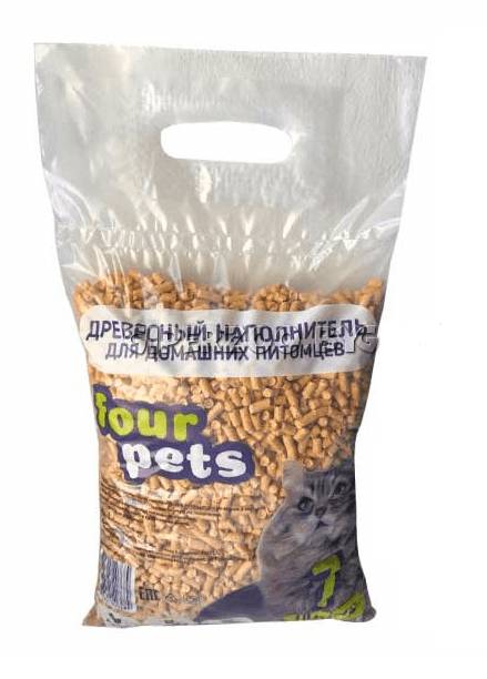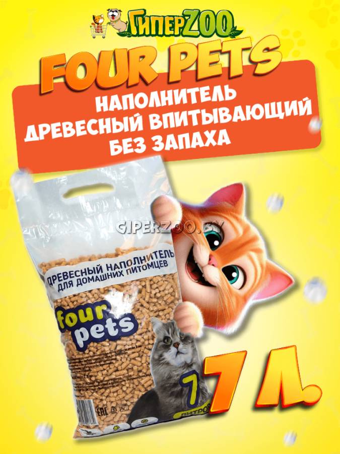 FOUR PETS, 7 л - древесный наполнитель для туалета впитывающий.
