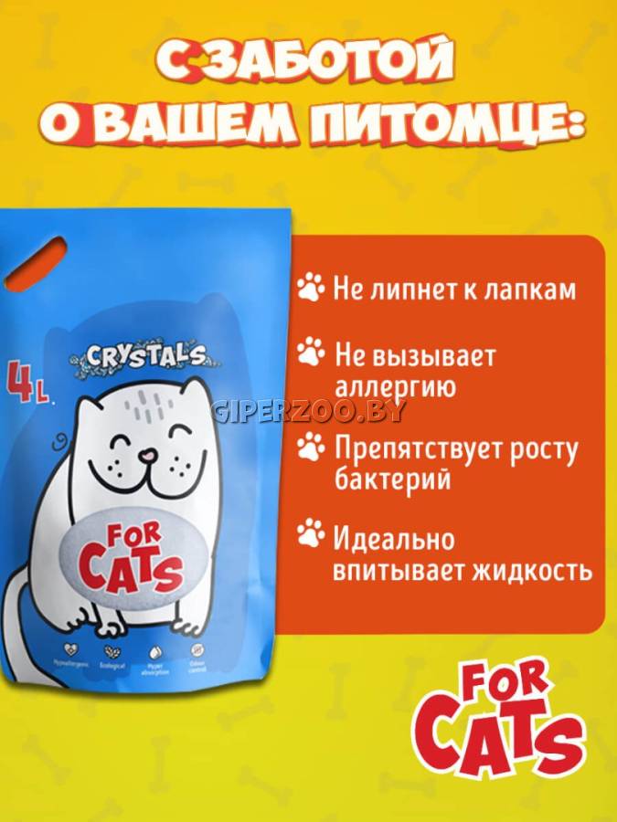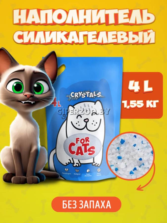 FOR CATS без запаха 4 л – наполнитель для туалета силикагелевый впитывающий экологически чистый с разнокалиберной гранулой.
