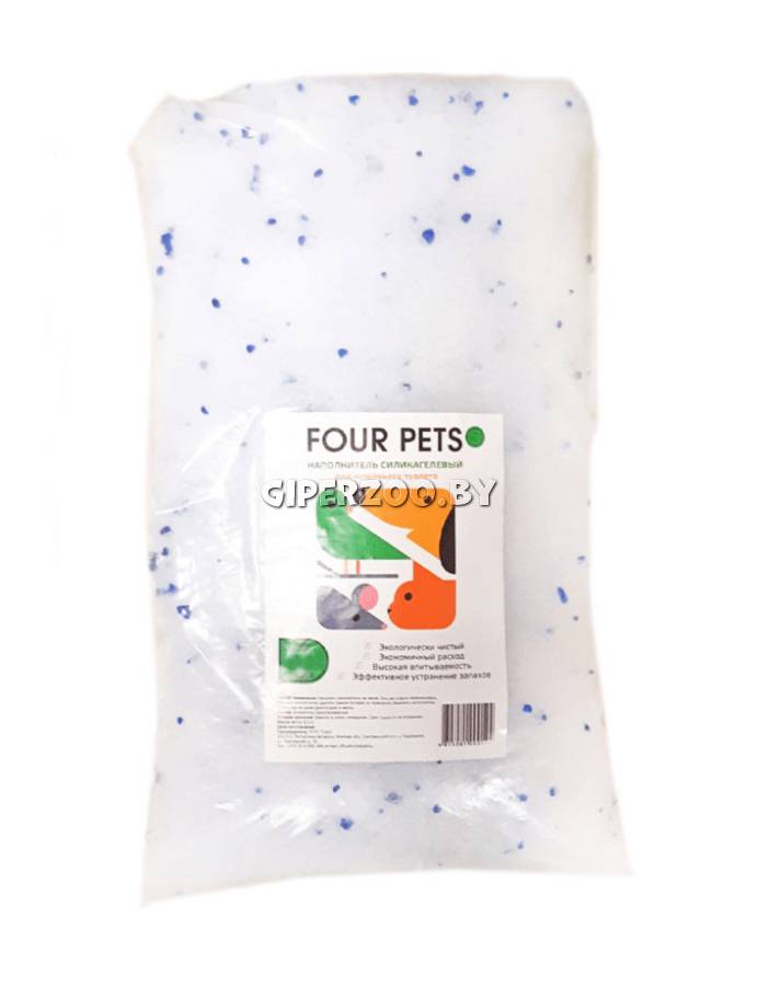 FOUR PETS, 12 л – наполнитель для туалета силикагелевый впитывающий экологически чистый с разнокалиберной гранулой.