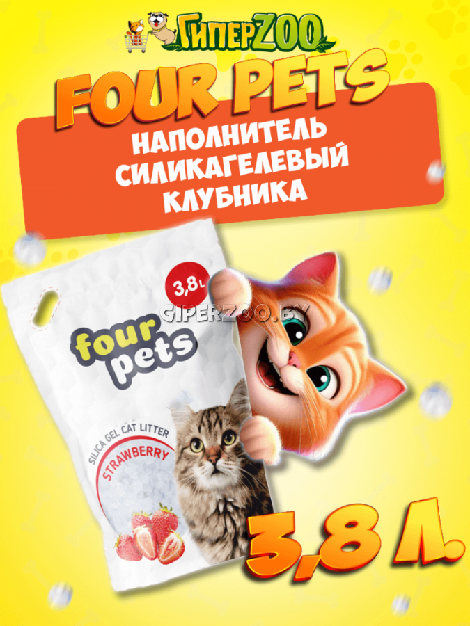 FOUR PETS наполнитель силикагелевый с ароматом клубники, 3,8 л
