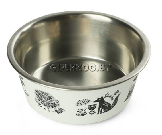 Стильная круглая миска из нержавеющей стали с высокими бортиками идеально подходит как для воды, так и для корма разной консистенции. Миска комфортна для питомцев и легко моется под струей проточной воды с использованием бытовых моющих средств. Прорезиненное основание в виде лапки обеспечивает максимальную устойчивость, препятствуя скольжению изделия во время использования, а оригинальный принт сделает такую миску украшением любого интерьера.