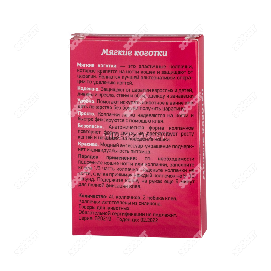 Надежно. Защищают от царапин взрослых и детей, диваны и кресла, стены и обои, одежду и занавески. Удобно. Помогают искупать животное в ванне или дать лекарство без боязни получить царапину. Просто. Колпачки легко надеваются на когти и быстро фиксируются с помощью клея. Безопасно. Анатомическая форма колпачков повторяет форму когтя, не препятствует росту когтей и не влияет на поведение кошки.