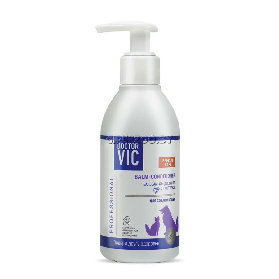 Бальзам-кондиционер "Doctor Vic" эффективно распутывает сложные колтуны и предупреждает их появление, увеличивает объем шерсти, облегчает расчесывание и укладку, защищает от неблагоприятных факторов окружающей среды. Оливковое масло и экстракт меда питают и восстанавливают кожно-волосяной покров, придавая естественный блеск, способствуют росту и обновлению шерсти.