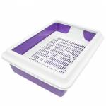 - Лоток с решеткой. Если он понравится вашей кошке, то считайте, вам повезло. Лотки с решеткой отличаются невысокой стоимостью. Их главное преимущество в том, что для них необязателен наполнитель. Жидкость просачивается через решетку, а лапки остаются сухими. При этом нет дополнительных затрат на наполнитель и он не раскидывается вокруг лотка. Из минусов то, что нужно следить за туалетом и убирать лоток по мере его загрязнения, чтобы не распространялся неприятный запах. Также эти лотки имеют, как правило, самый простой дизайн.