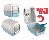 - Закрытый лоток для кошек. Представляет из себя пластиковую емкость внешне похожую на переноску. Как правило, с прозрачной дверцей. Полная отгороженность лотка может быть и плюсом, и минусом. Это зависит от предпочтений вашего питомца. Кто-то любит укромное уединение, чтобы его не беспокоили, а кто-то может забояться туда залезть. Если Вашему питомцу лоток понравится, то несомненными плюсами станут хорошее удержание запаха и полное отсутствие раскидывания наполнителя.