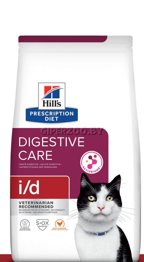 Hill's Prescription Diet i/d Digestive Care для кошек (курица) с великолепным вкусом клинически доказано питает кишечный микробиом и помогает уменьшить расстройства пищеварения.
