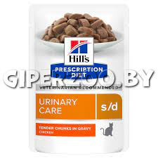 Hills Prescription Diet s/d Urinary Care — диетический влажный корм с курицей для поддержания здоровья мочевыводящих путей у взрослых кошек.Камни в мочевом пузыре - это совокупность кристаллов минералов, которые объединяются в мочевыводящих путях. Они могут вызвать дискомфорт и привести к более серьезным проблемам, требующим консультации у ветеринарного специалиста.Диетологи и ветеринарные специалисты Hills разработали диетическое питание Prescription Diet s/d для поддержания здоровья мочевыводящих путей кошки. Клинически доказано: s/d растворяет струвитные камни всего за 6 дней (в среднем за 13 дней).