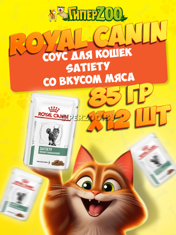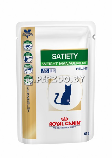 Royal Canin SATIETY (соус), 85 гр*12 шт - корм консервированный полнорационный диетический для взрослых кошек, рекомендуемый для снижения веса. Ветеринарная диета.