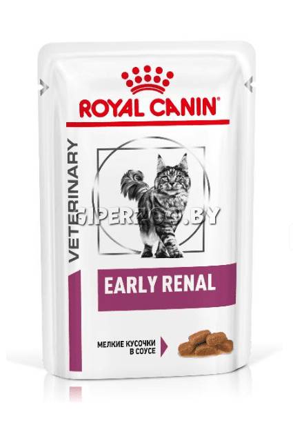 Набор Royal Canin Early Renal (соус) 85гр*12 шт - это консервированный полнорационный диетический корм для взрослых кошек при ранней стадии почечной недостаточности.