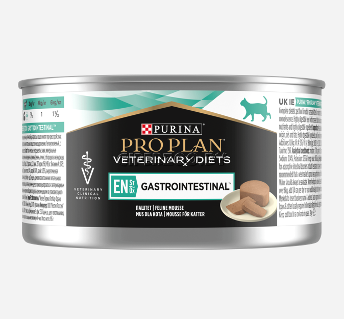 Влажный ветеринарный (лечебный) корм Purina PRO PLAN Veterinary Diets Gastrointestinal EN для кошек при расстройствах пищеварения, паштет (1 банка 195 гр) Purina Pro Plan Veterinary diets EN - корм консервированный полнорационный диетический для взрослых кошек и котят при расстройствах пищеварения. Рекомендован для снижения острого нарушения всасывающей функции кишечника, способствует восполнению питательных веществ и выздоровлению. Разработан с повышенным уровнем электролитов, высокоусвояемых ингредиентов, высокой энергетической ценностью и высокой концентрацией незаменимых питательных веществ.