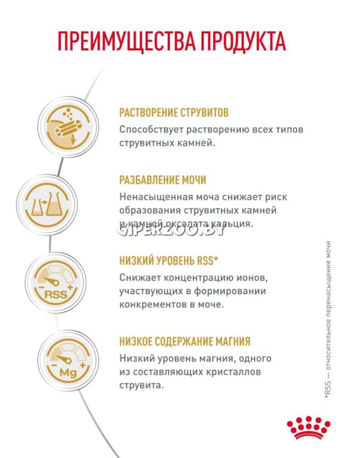 Urinary Feline S/O – полнорационный диетический корм для кошек. Стимулирует подкисление мочи, а совместно с низким содержанием магния способствует растворению струвитных мочевых камней и снижает риск их повторного образования. Также рекомендуется при воспалении нижних отделов мочевыводящих путей. Рекомендации: Посоветуйтесь с вашим ветеринарным врачом по поводу целесообразности использования данного корма. Курс применения корма Urinary Feline S/O – от 5 до 12 недель для растворения струвитных камней и до 6 месяцев – в целях снижения риска рецидивов струвитного уролитиаза. Состав: рис, изолят растительных белков*, дегидратированные белки животного происхождения (птица), пшеница, животные жиры, гидролизат белков животного происхождения (вкусоароматические добавки), растительная клетчатка, минеральные вещества, мука из зерновых культур, рыбий жир, соевое масло, фруктоолигосахариды, гидролизат из панциря ракообразных (источник глюкозамина), экстракт бархатцев прямостоячих (источник лютеина).
