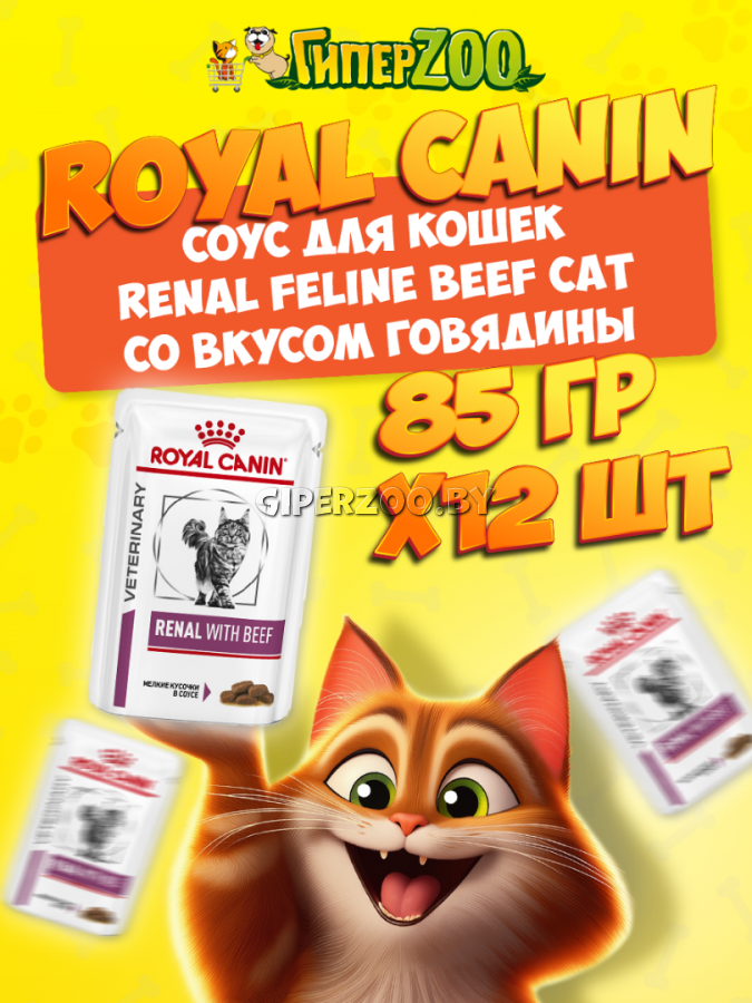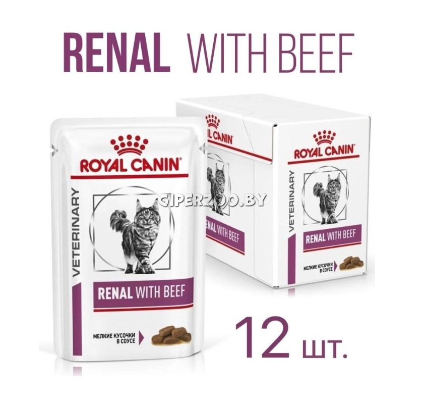 Корм консервированный полнорационный диетический для взрослых кошек с говядиной для поддержания функции почек при острой или хронической почечной недостаточности. Ветеринарная диета. Показания: - Хроническая почечная недостаточность (ХПН) - Профилактика рецидивов образования камней оксалата кальция у кошек с ослабленной функцией почек - Профилактика рецидивов уролитиаза (уратов, цистинов), вызванных снижением уровня рН мочи Противопоказания: - беременность - лактация - рост Состав: мясо и мясные субпродукты (курица, свинина, говядина 4 %), злаки, масла и жиры, минеральные вещества, субпродукты растительного происхождения, источники углеводов.