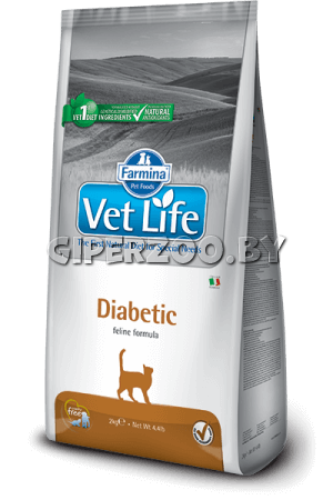 Farmina Vet Life Diabetic - диетическое питание для кошек, разработанное для контроля уровня глюкозы в крови при сахарном диабете.