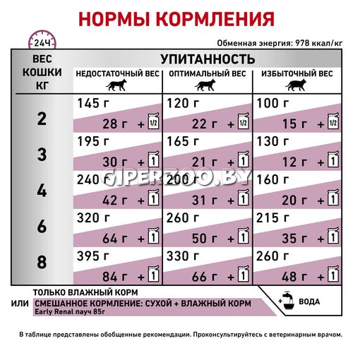 посоветуйтесь с вашим ветеринарным врачом по поводу целесообразности использования данного корма. Развитие почечной недостаточности у кошки происходит без видимых симптомов. Поддержать здоровье питомца на ранней стадии развития хронической болезни почек или в случае диагностирования у него риска развития такого заболевания способна правильно подобранная диетотерапия.