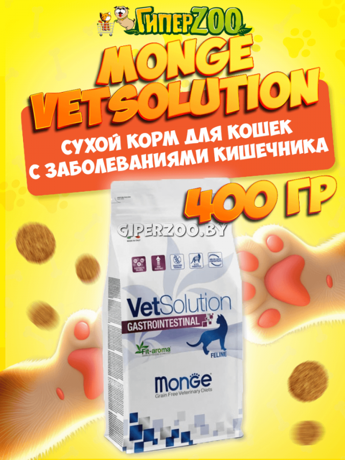 Monge VetSolution Gastrointestinal Cat, 400 гр - корм сухой, диета для кошек с гастроэнтерологическими патологиями