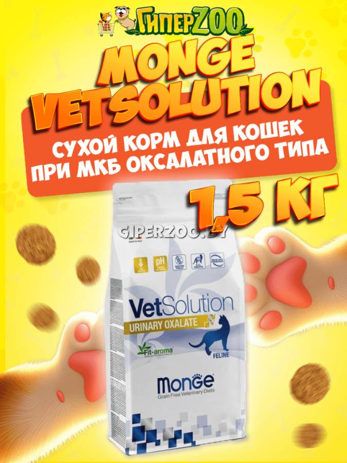 Monge VetSolution Urinary Oxalate Cat, 1,5 кг - корм сухой,диета для профилактики и лечения мочекаменной болезни оксалатного типа