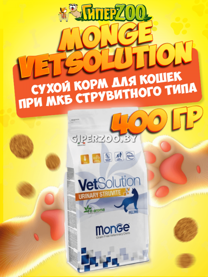 После завершения курса лечения рационом MONGE VETSOLUTION CAT URINARY STRUVITE рекомендуется применение рациона MONGE SUPERPREMIUM CAT URINARY.