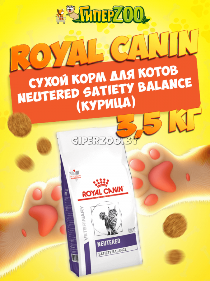Royal Canin Neutered Satiety Balance, 3,5 кг - корм сухой полнорационный для взрослых котов и кошек с момента стерилизации до 7 лет. Диета для здоровых кошек.
