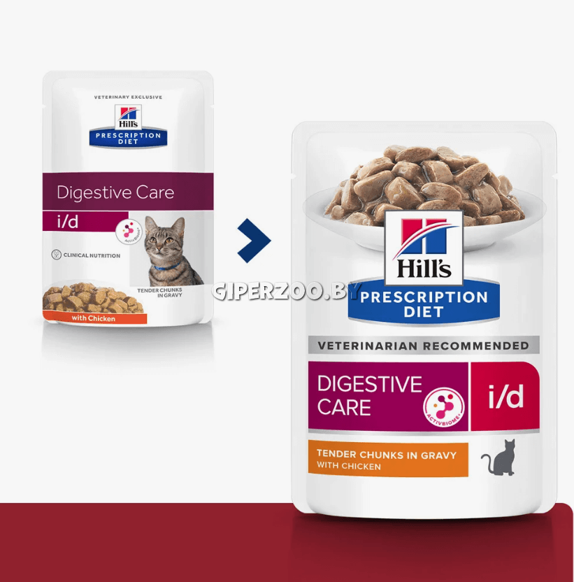 Hill's Prescription Diet i/d диетический корм для кошек с великолепным вкусом клинически доказано питает кишечный микробиом и помогает уменьшить расстройства пищеварения.