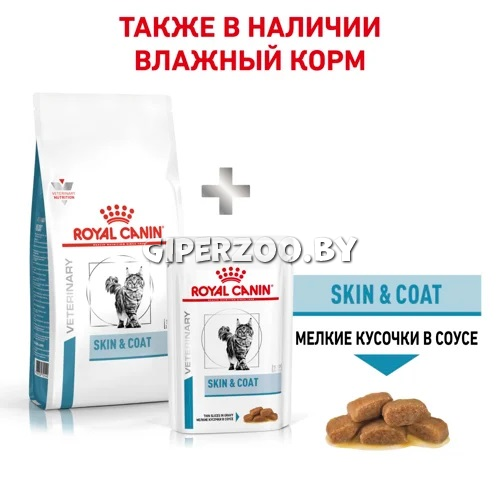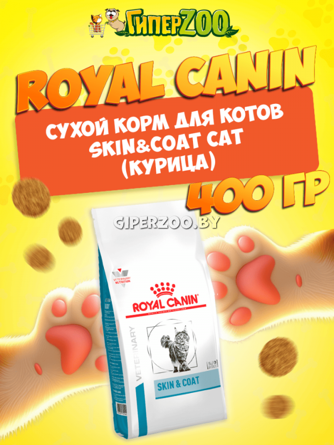 Royal Canin Skin & Coat Feline, 400 гр - корм сухой полнорационный диетический для кошек после стерилизации, предназначенный для поддержания защитных функций кожи при дерматозах и чрезмерном выпадении шерсти. Ветеринарная диета.