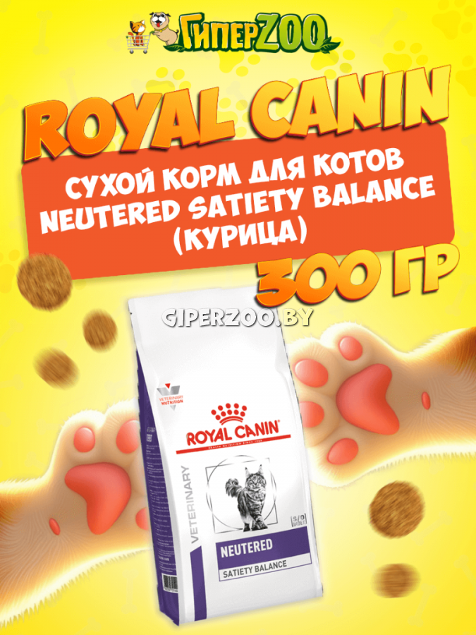 Royal Canin Neutered Satiety Balance, 300 гр - корм сухой полнорационный для взрослых котов и кошек с момента стерилизации до 7 лет. Диета для здоровых кошек.