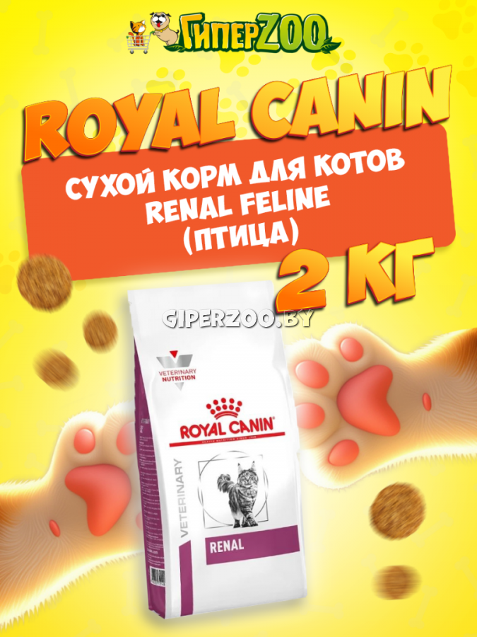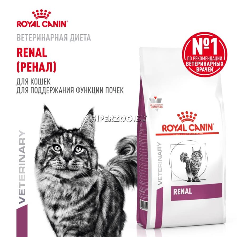 Royal Canin Renal Feline, 2 кг - корм сухой полнорационный диетический для взрослых кошек для поддержания функции почек при острой или хронической болезни почек. Ветеринарная диета.
