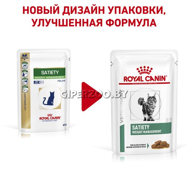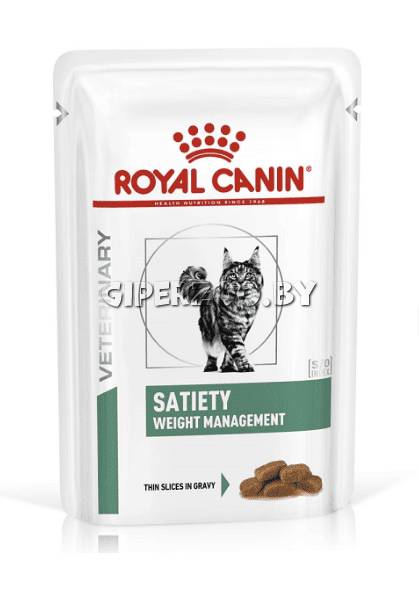 Royal Canin SATIETY (соус), 85 гр - корм консервированный полнорационный диетический для взрослых кошек, рекомендуемый для снижения веса. Ветеринарная диета.